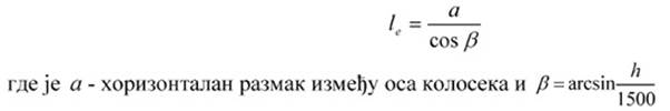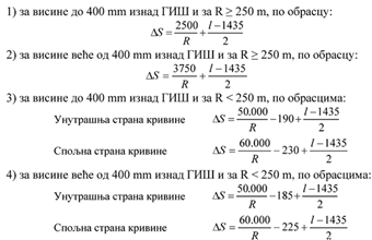 2) nadvišenje spoljne šine u krivine;