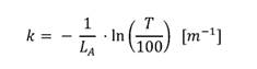 8) koeficijent apsorpcije svetlosti - k, predstavlja koeficijent definisan Beer-Lambert-ovim zakonom: