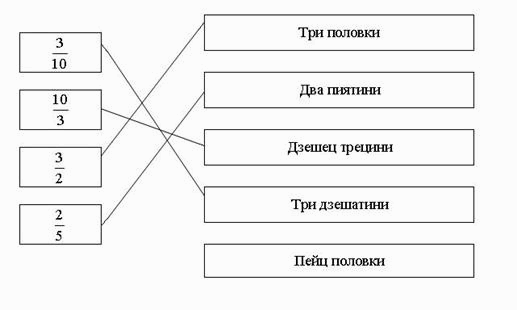 Котре зоз понукнутих числох єднаке числу 0,3? Заокруж букву опрез точного одвита. a) 10/3 б) 3/10 в) 1/3 г) 3/1 |