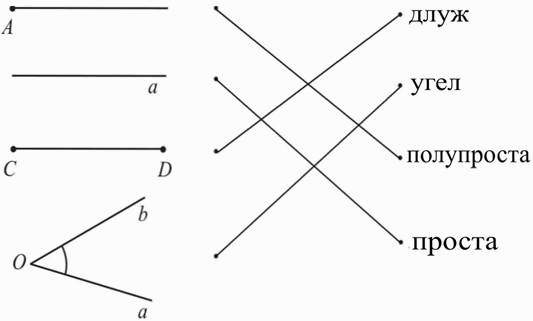 МА.1.3.1. Школяр влада з поняцами: длуж, полупроста, проста, ровня и угел (обачує їх модели у реалних ситуацийох и зна их нарисовац хаснуюци прибор; розликує даєдни файти углох и паралелни и нормални прости).