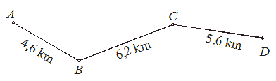 Розстоянє медзи местом А и местом D приказане на шлїдуюцей мапи.