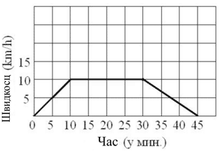 Мая вожела бициґлу 45 минути. После перших 10 минутох воженя досцигла швидкосц од 10 km/h. Вожела з тоту швидкосцу шлїдуюци 20 минути, а потим почала равномирно зменшовац швидкосц док ше нє застановела. Дополнї дияґрам котри приказує Майово воженє, так як цо започате.